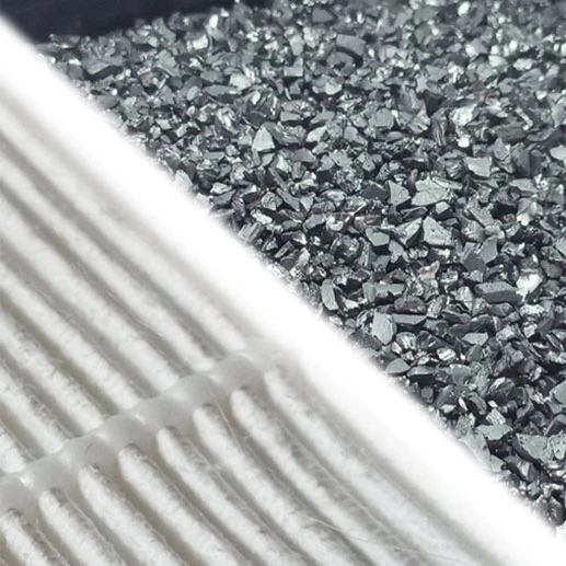 Filtro para partículas de alta eficiencia, compuestos por fibra de vidrio, en un formato plegado, dispuesto en la tapa del filtro. Para retención de partículas volátiles contaminantes. + Filtro con carbón activado granular o Pelet Vapamon para amoníacos y aminas, ubicado en la base del cartucho.
