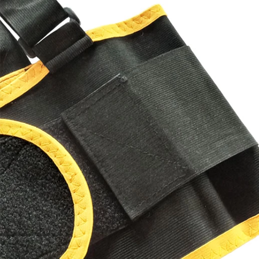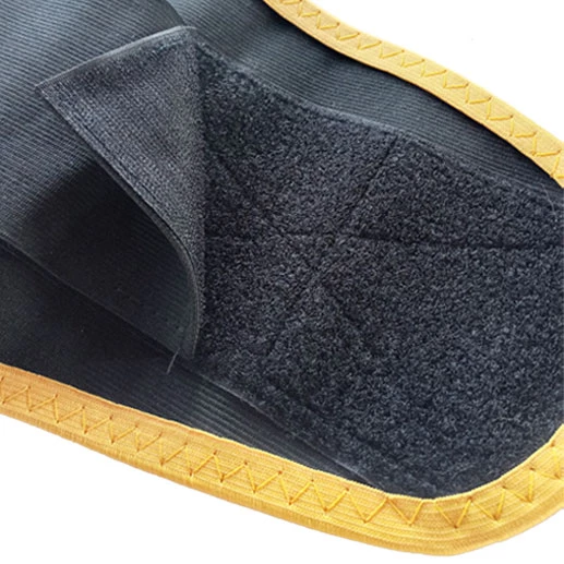 Está confeccionado con elástico pesado de 20cm de alto y de 200 mm (con elongación del 100%), con punteras de felpa. Desde el elástico central hasta el extremo posee un abrojo de felpa de 100 mm de ancho, ribeteado con elástico liviano de 25 mm.